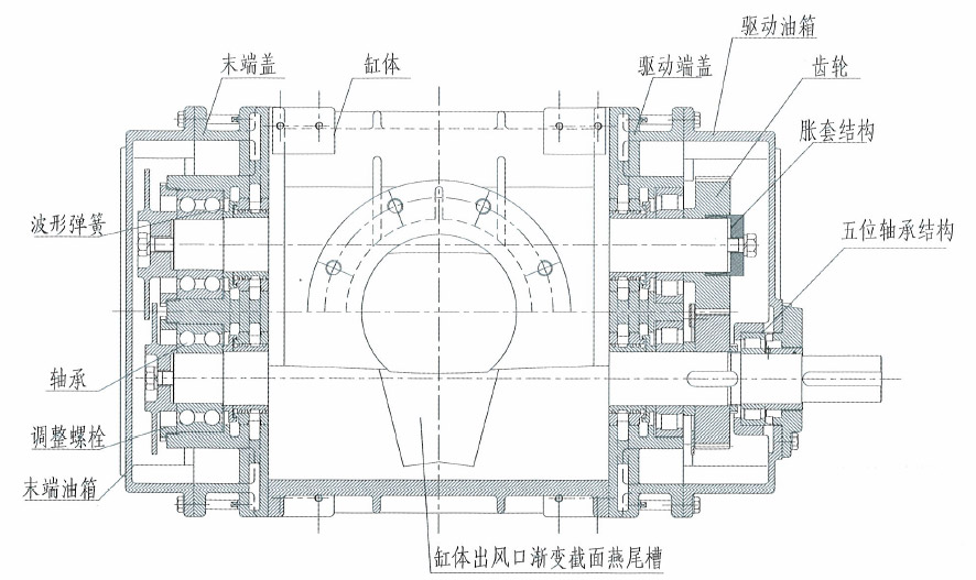 5、采用羅茨風機葉輪間隙調整裝置,主要是通過從動齒輪后面的—個漲緊聯接套來調整葉輪間隙,調節方便簡單。