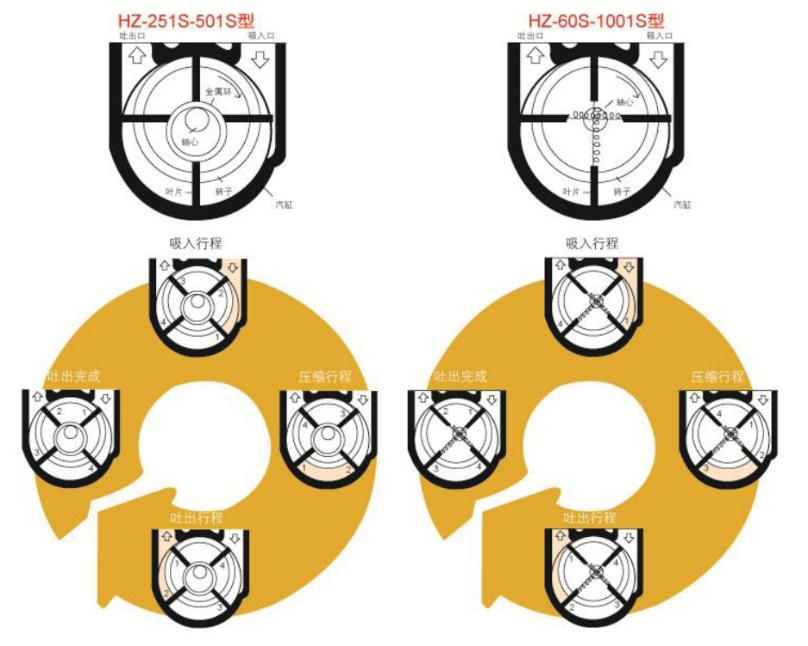 鼓風(fēng)機靠汽缸內(nèi)偏置的轉(zhuǎn)子偏心運轉(zhuǎn),并使轉(zhuǎn)子槽中的葉片之間的容積變化將空氣吸入、壓縮、吐出。在運轉(zhuǎn)中利用鼓風(fēng)機的壓力差自動將潤滑油送到滴油嘴,滴入汽缸內(nèi)以減少摩擦及噪聲,同時可減少汽缸內(nèi)氣體的回流。